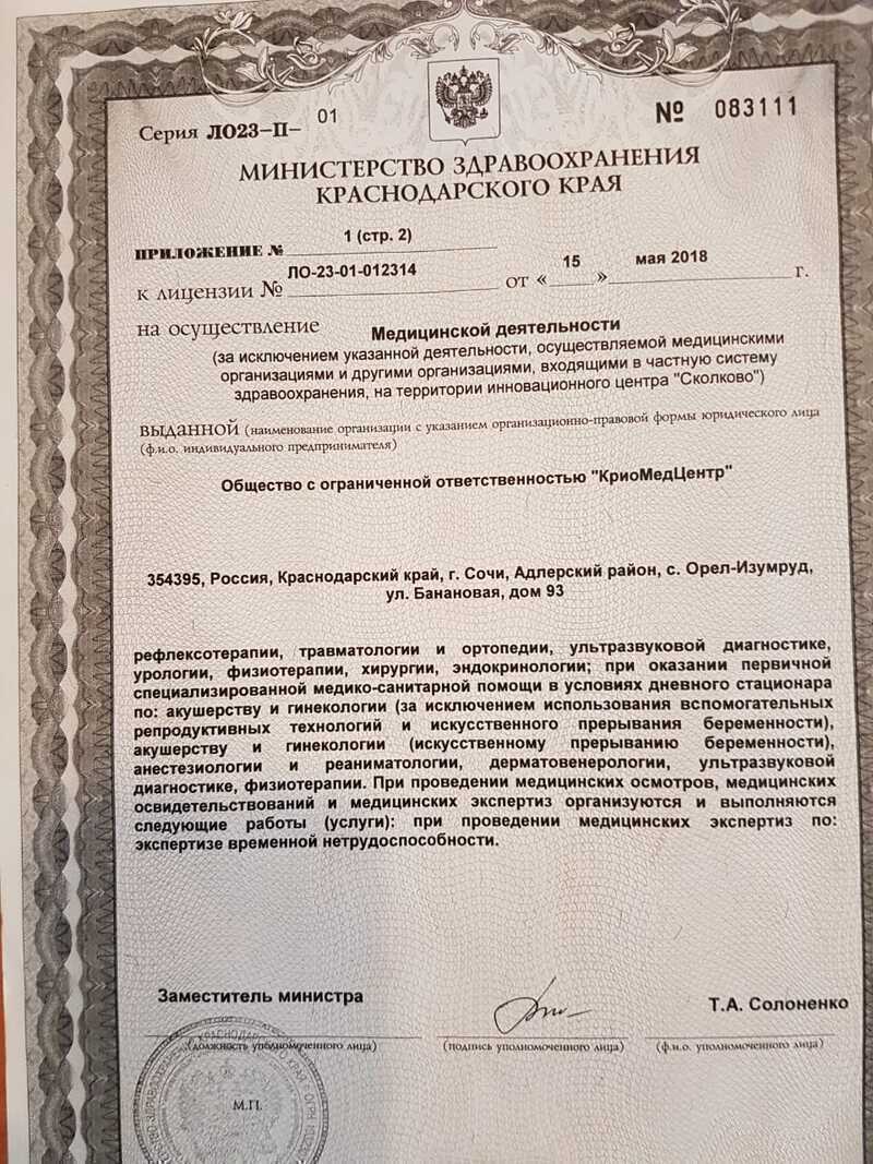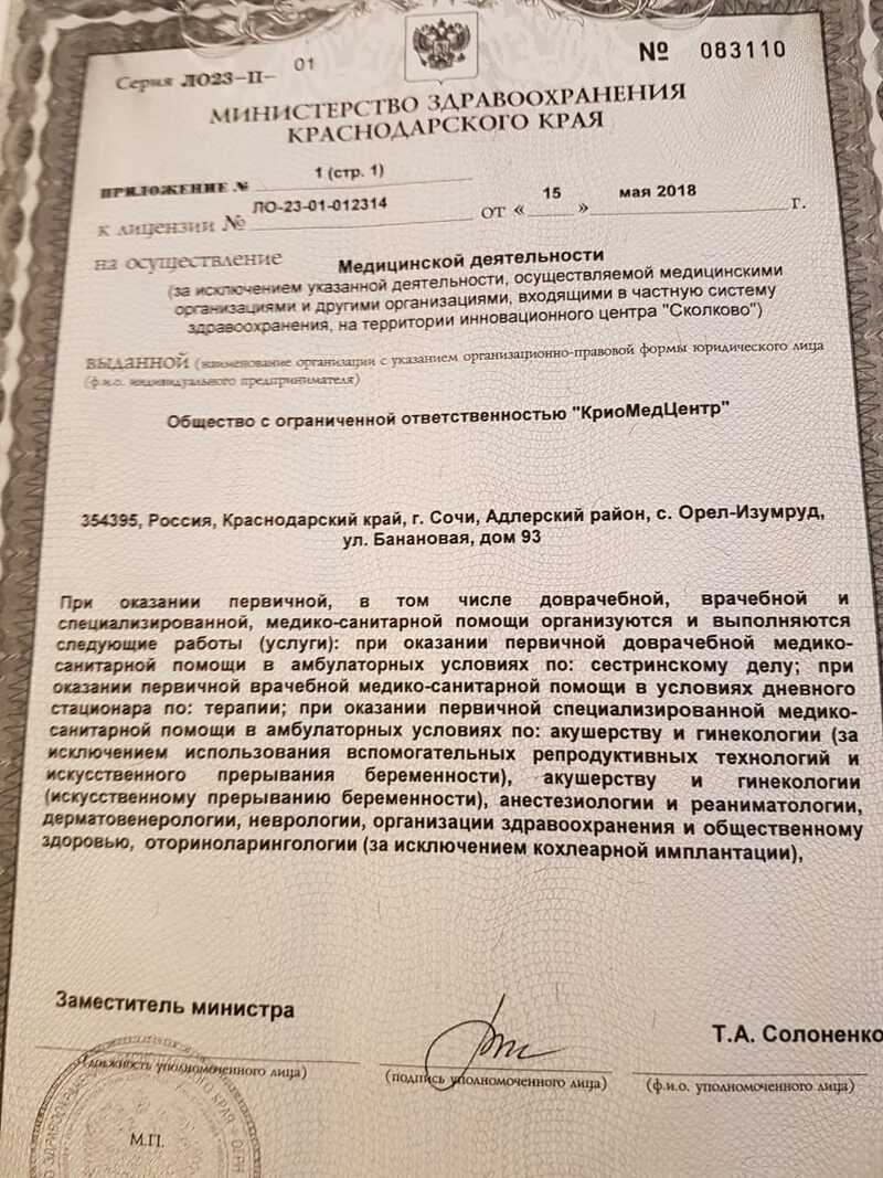Диапазоны цен на приём врачей и специалистов, услуги и диагностику в КриоМедЦентр в Сочи.